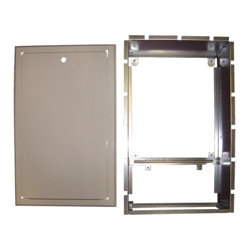 Вградено куќиште за грејна станица. Од поцинкуван лим со монтажна рамка за HERZ DE LUXE, STANDARD, PROJECT грејната станица. Рамката и вратата на шкафчињата се бела (RAL 9003) боја. Димензии: 650 x 850 x 200 mm.