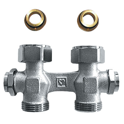 HERZ-3000 бајпас тело за двоцевен систем на греење со двострано празнење, празнење од воздух и затворање, приклучок на грејно тело G 3/4 – прав модел