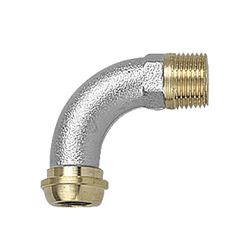 Приклучен лак 90° за железни цевки, Од месинг, никлувано, без навртки, конусно дихтување.