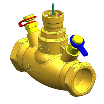 За регулирање на голем проток. Направен од отпорен децинкуван месинг со навоен приклучок M 28 x 1,5 за врска со моторен погон за две точки или модуларна регулација на проток. Должина на од 4 mm. Приклучоци за мерење на диференцијален притисок се поставени пред и зад вретеното на вентилот. Погонот за вентил се нарачува одделно. Алатот за регулација на проток 1 4006 02 се нарачува одделно.